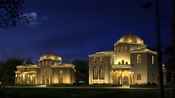 土耳其館及湯屋的屋頂形式體現(xiàn)著伊斯蘭建筑的特色。傳統(tǒng)的土耳其建筑受拜占庭建筑的影響,在方形基座上搭建一個完整的半圓穹頂。采用券拱的形式,而這種穹頂高高在上一只獨大的構(gòu)圖和建筑形制,形成土耳其館有特色的穹頂。