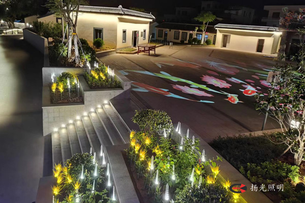 濱水休閑活動廣場設(shè)置的一些具有發(fā)光效果的燈具,增添一定的游玩觀賞性和趣味性,營造優(yōu)美,和諧的新鄉(xiāng)村環(huán)境。