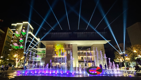 水束的高矮變化,音樂的節(jié)奏起伏、燈光的色彩變化交織出一幅美麗畫面。