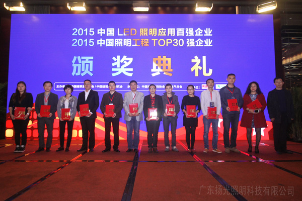 照明工程30強企業(yè)”頒獎典禮在廣州隆重召開。廣東揚光照明科技有限公司在眾多候選企業(yè)中脫穎而出,成功獲得2015年度“中國