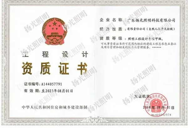 照明工程設(shè)計專項資質(zhì)甲級,至此,公司已成為全國為數(shù)不多的城市及