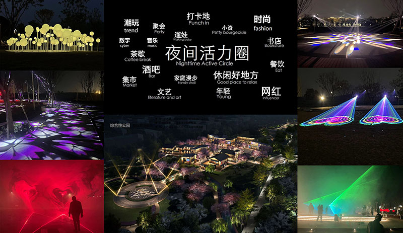 在方案設(shè)計過程中,我們首先從項目場地總體規(guī)劃的角度出發(fā),深入了解各地塊的區(qū)域功能、定位,使燈光系統(tǒng)盡可能考慮到所有地塊內(nèi)容,使其整體統(tǒng)一且獨具各自主題特色。我們特別注重于燈光環(huán)境對視覺生理的支持,用燈光創(chuàng)造可辨識的夜間環(huán)境;亮度、照度等量化指標的給出有堅實的理論基礎(chǔ),并與實際相符合。同時利用燈光對景觀結(jié)構(gòu)進行重組,使其成為感知環(huán)境特色的工具。整體布局上呈現(xiàn)多元、有活力的夜景形態(tài),適應多種夜間活動的需要。