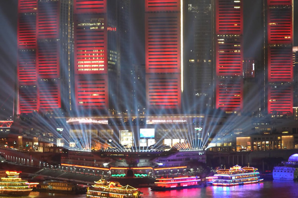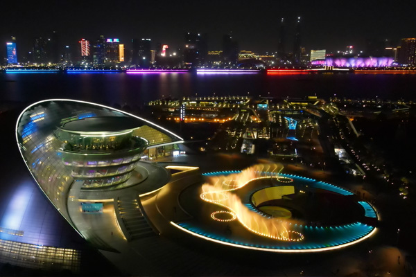 4.水幕 + 激光 + 噴泉聯(lián)動秀:水幕作為半透明介質(zhì),配合激光光束、音樂噴泉,在湖面形成流動的光影電影;